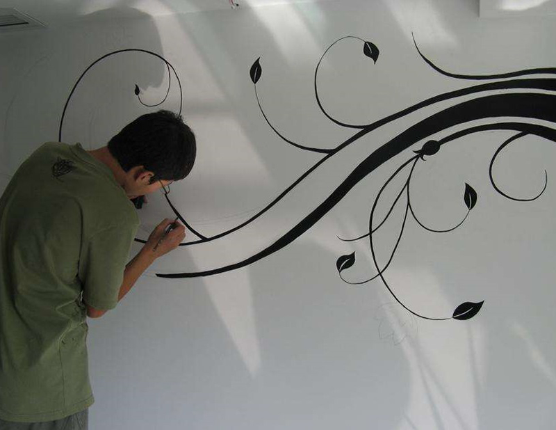 手繪墻壁,請(qǐng)畫師或者設(shè)計(jì)師在墻壁上進(jìn)行繪畫,這是現(xiàn)代年輕人比較流行的一種方式在墻面上根據(jù)圖案大致的形狀貼上膠紙,這是為了在上面畫圖案用的。在膠紙上面用鉛筆打稿,用深色馬克筆描出要用的線條。然后沿著這些線條將圖形刻出。在墻面鋪滿報(bào)紙,以使圖案外的墻體不被顏料污染。為了使顏料漆出來(lái)的效果更好,在圖案上先上一層白色的底漆。在圖案部位噴涂或刷涂顏色。