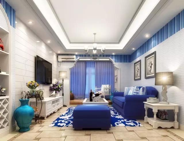 大面積的使用藍色,搭配藍色的軟裝,海洋元素很豐富。