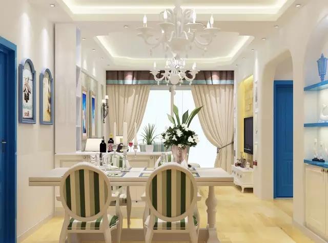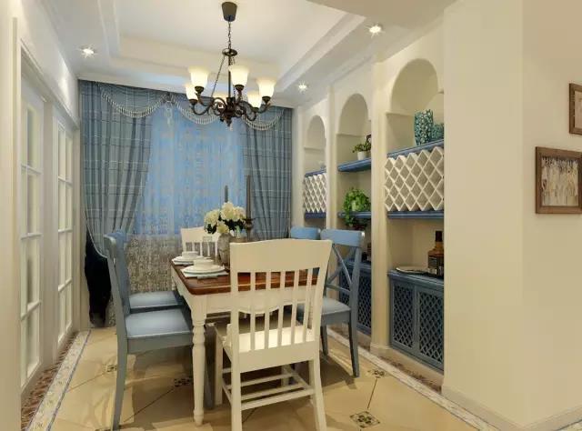 發(fā)現(xiàn)國內設計師很喜歡在餐廳壁櫥上來體現(xiàn)地中海元素哦。