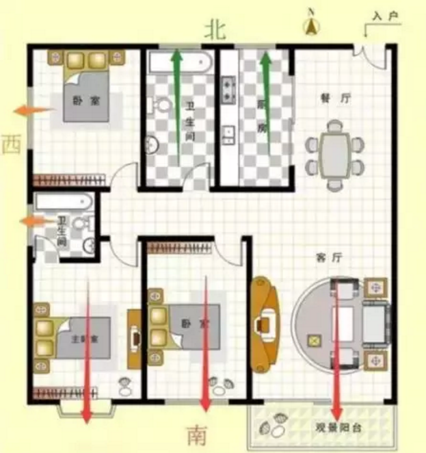 南北通透是指南北都有正對(duì)著的窗戶,能夠最大限度進(jìn)行空氣對(duì)流。一般業(yè)主購(gòu)房的時(shí)候,都愿意去購(gòu)買南北通透的房子,講究通風(fēng)性好、私密性好、符合風(fēng)水說法。一般指餐廳與客廳的窗戶或者廚房與客廳窗戶正對(duì)著,形成對(duì)流的這種情況,就可以稱之為南北通透。