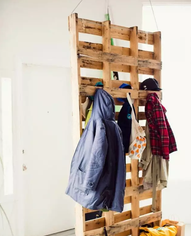 廢物利用妙極了,粗獷的原木色,又有天然的掛桿,吊起來就是個完美的玄關(guān)隔斷。