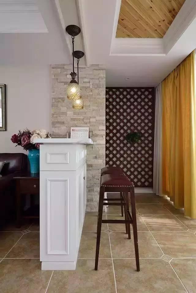 小巧的吧臺占據(jù)的位置非常小,利用陽臺和客廳之間的位置,做上一個小吧臺吧,這里的光線又好,晚上欣賞夜景也方便,實在是提升吧臺浪漫程度的一個好地方!