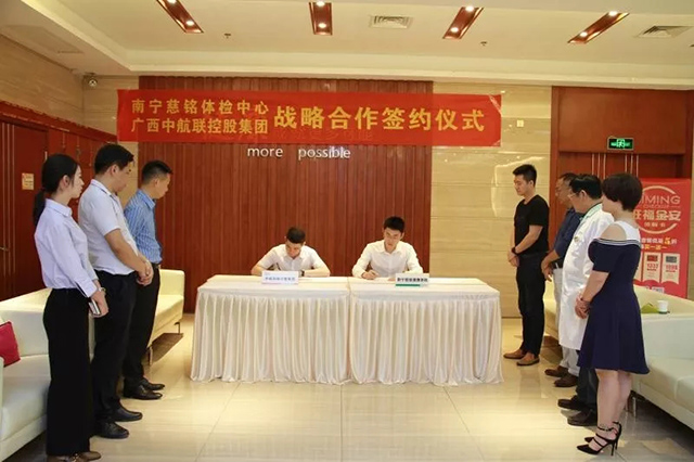 4月13日下午,中航聯(lián)控股集團(tuán)公司與南寧慈銘體檢在南寧慈銘體檢中心,就雙方達(dá)成戰(zhàn)略合作關(guān)系進(jìn)行正式簽約,并將慈銘體檢中心列為集團(tuán)指定體檢機(jī)構(gòu)。