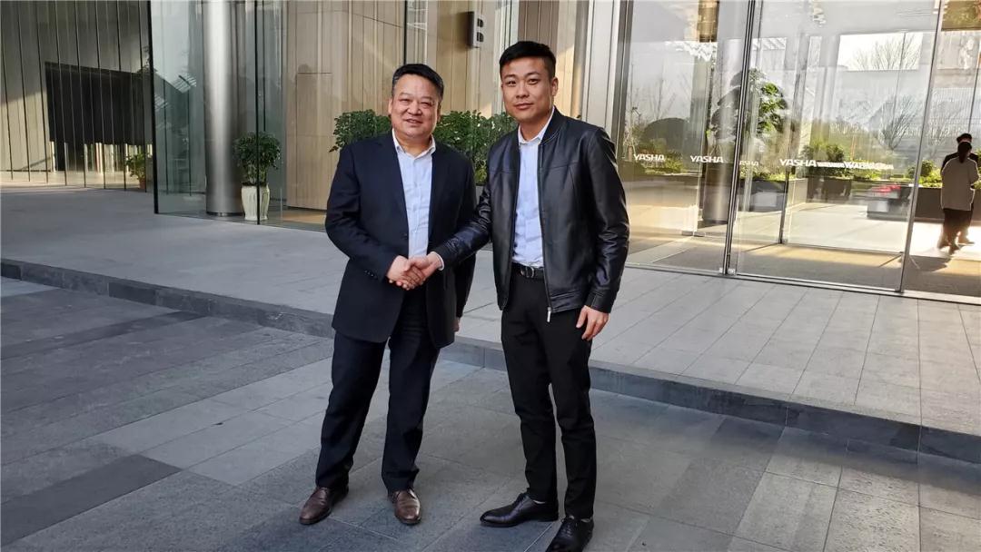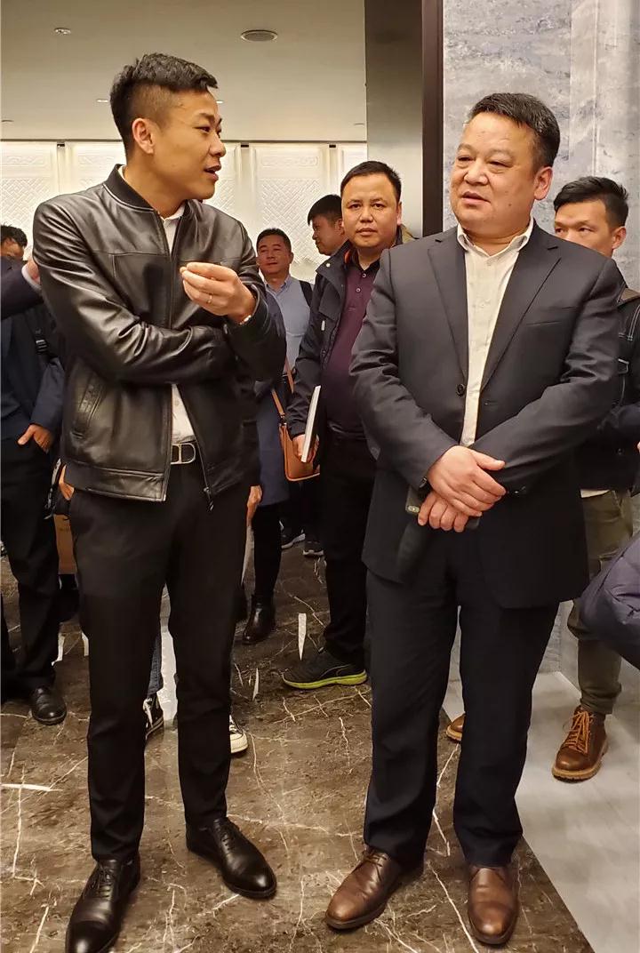 ▲丁胡總裁會(huì)上就裝配式家裝前景應(yīng)用與亞廈董事長丁海富交流