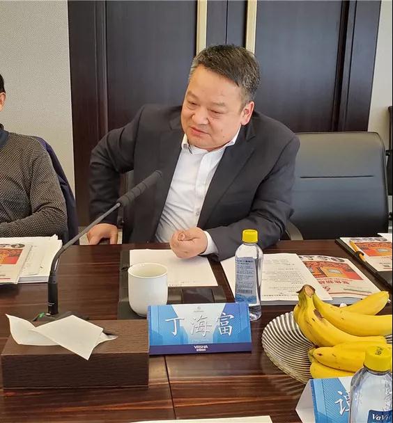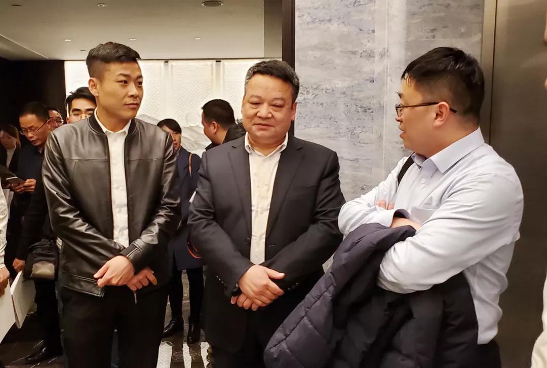 ▲會(huì)議間隙,丁胡總裁與亞廈董事長丁海富、浙江裝協(xié)副秘書長袁海泉交流