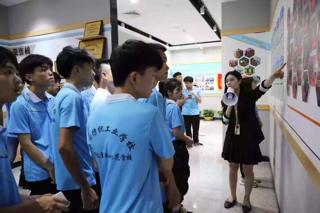 人資部經(jīng)理劉高才、主管黃丹丹帶領(lǐng)紡織工業(yè)學校學生參觀文化長廊,向?qū)W生們介紹公司企業(yè)文化理念、組織架構(gòu)、服務理念、企業(yè)榮譽、員工關(guān)懷等方面內(nèi)容,讓學生們對公司的企業(yè)文化有更深的了解。