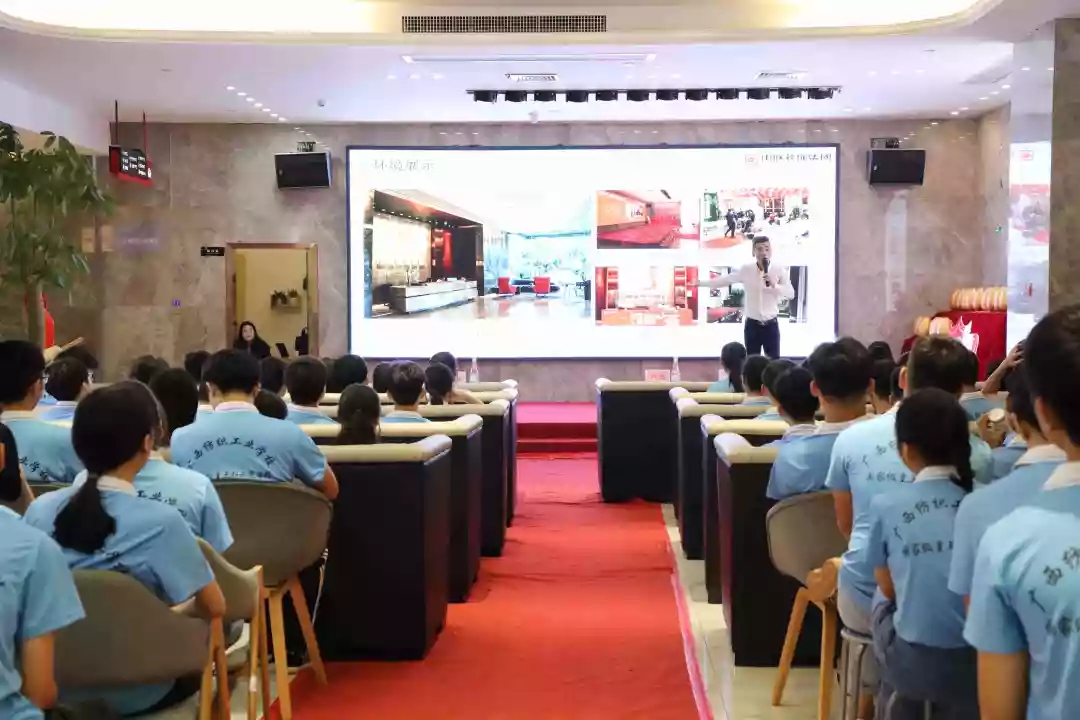 企業(yè)宣講交流會上,袁總向廣西紡織工業(yè)學校師生系統(tǒng)介紹了中庭裝飾集團的發(fā)展歷程、高端設(shè)計服務理念、未來的發(fā)展規(guī)劃以及各部門崗位職能、就業(yè)能力要求等,讓學生更加深入了解集團,同時也讓有志來集團發(fā)展的學生明確了未來的學習及自我能力提升方向。