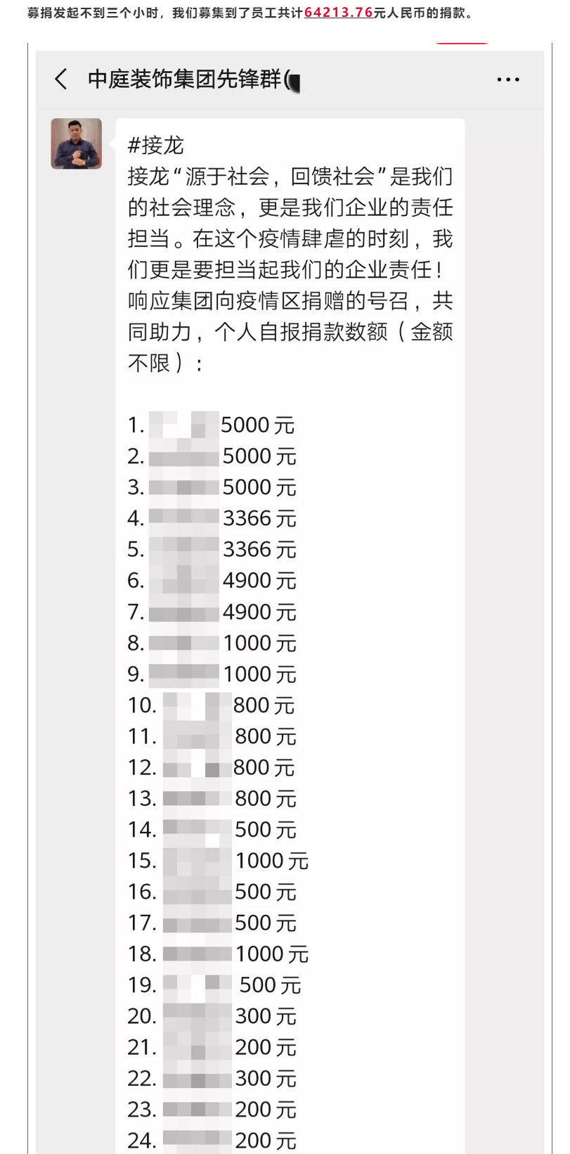 抗疫攻堅(jiān),人人有責(zé)丨中庭集團(tuán)首批員工愛心募捐已到位