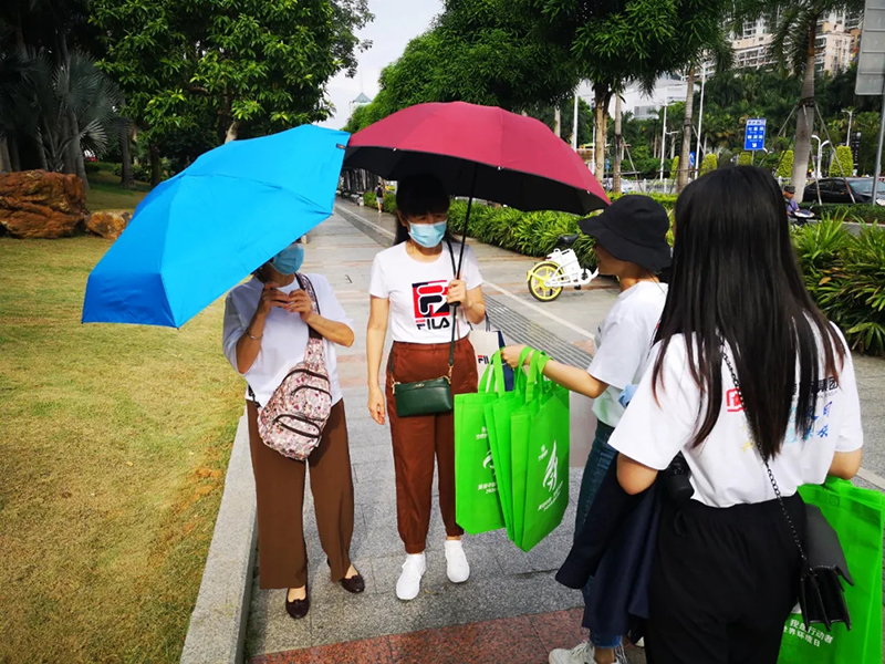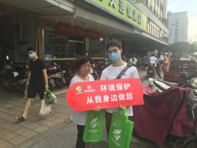 中庭環(huán)保袋走進社區(qū)、走進地鐵、走上街頭,將環(huán)保意識傳遞給了老人,剛剛下課的孩子,辛勤工作的人們,提倡大家以后都用環(huán)保袋出行購物,盡量減少塑料袋的使用。