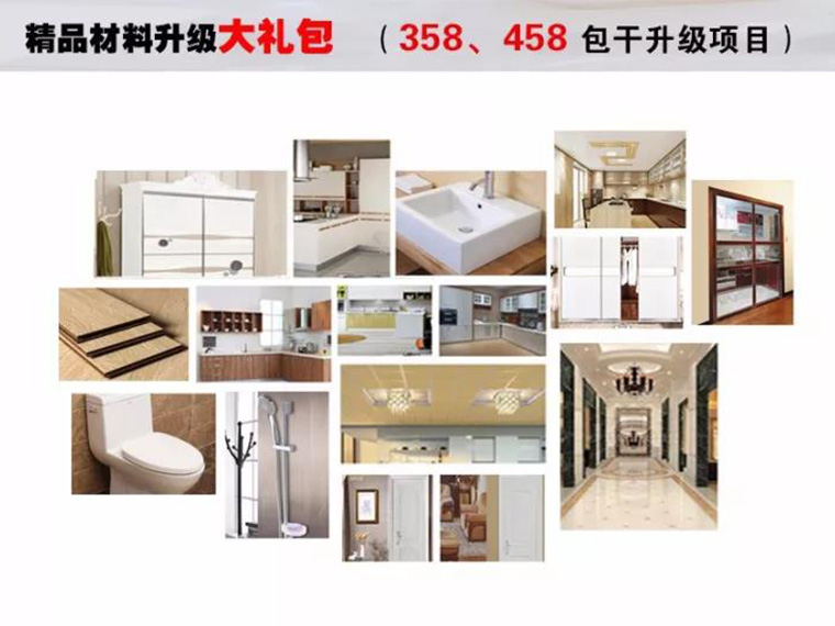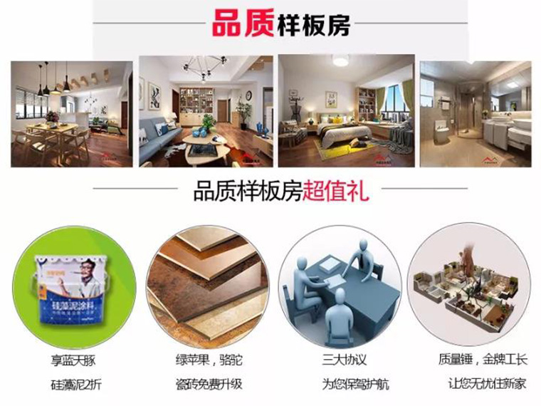 全房精品主材,墻漆,吊頂、瓷磚、木地板、衛(wèi)浴、櫥柜、室內(nèi)門,等免費(fèi)升級(jí),您可以選購到自己心儀的家裝建材,還能享受超級(jí)折上折哦