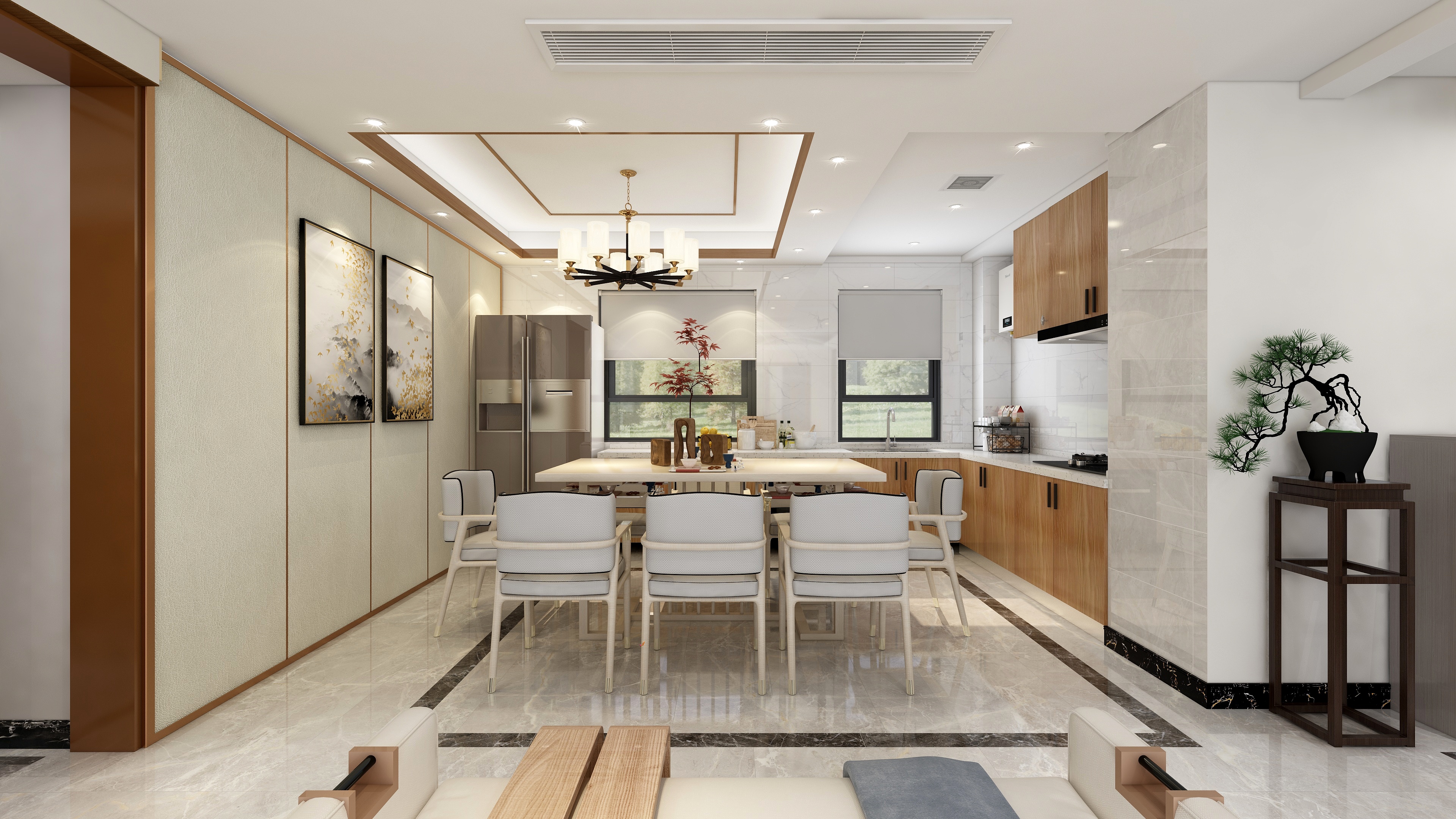 施工面積:120-150㎡| 設(shè)計(jì)風(fēng)格:新中式風(fēng)格