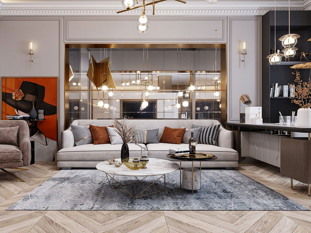 瀏覽量:444本案例屬于美式輕奢風格,設計裝飾中以金屬、皮革的中性色調為主。“輕奢”,是一種優(yōu)雅的生活態(tài)度,更是設計展現的一種高度,它飽含奢華的氣質內涵,拋棄奢華的外在表現,并且使用輕度的體現方式,在優(yōu)雅之上稍加金屬修飾,便形成了自然而極致的居家風格。