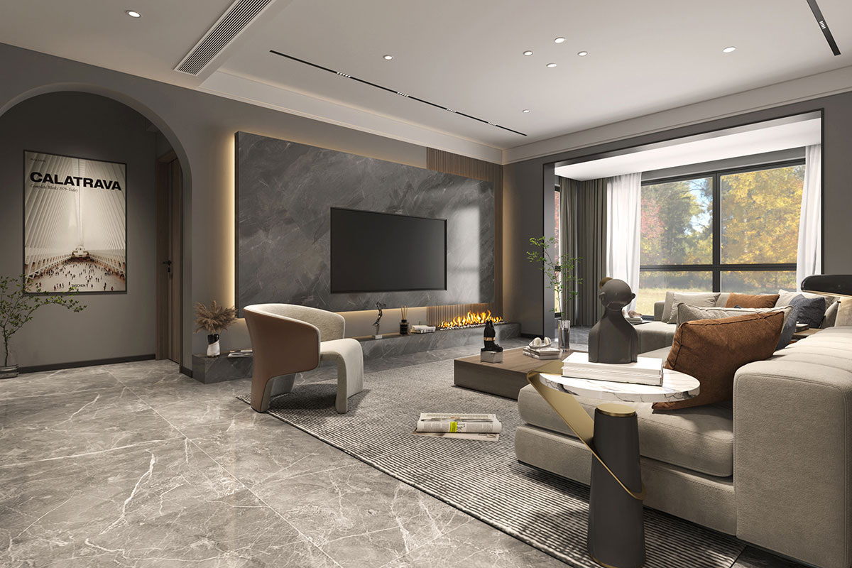 本案總面積為136m2,設(shè)計師整體色彩上采用“黑白灰”基調(diào),局部輔以調(diào)色,空間沉穩(wěn)靈動跳躍。本案以現(xiàn)代風(fēng)格輕巧內(nèi)飾,低飽和度色彩點綴空間,形成輕松舒適的氛圍同時也不乏低調(diào)內(nèi)斂的腔調(diào),再加上富有質(zhì)感的輕奢家居,獨一無二的理念和獨特視覺呼之欲出。