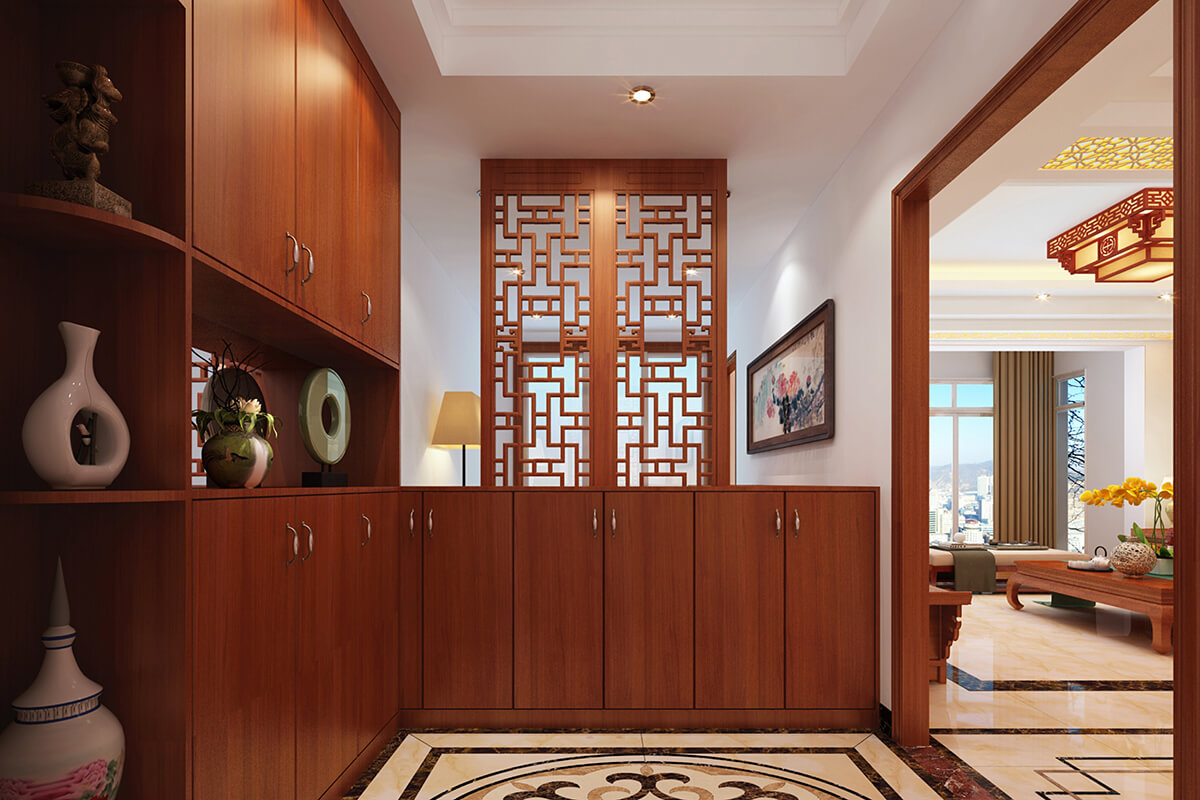 本案設計采用新中式風格,中式風格的古色古香與現(xiàn)代風格的簡單素雅自然銜接,使生活的實用性和對傳統(tǒng)文化的追求同時得到了滿足。居室在色彩方面秉承了傳統(tǒng)古典風格的典雅和華貴,但與之不同的是加入了很多現(xiàn)代元素,呈現(xiàn)著時尚的特征。