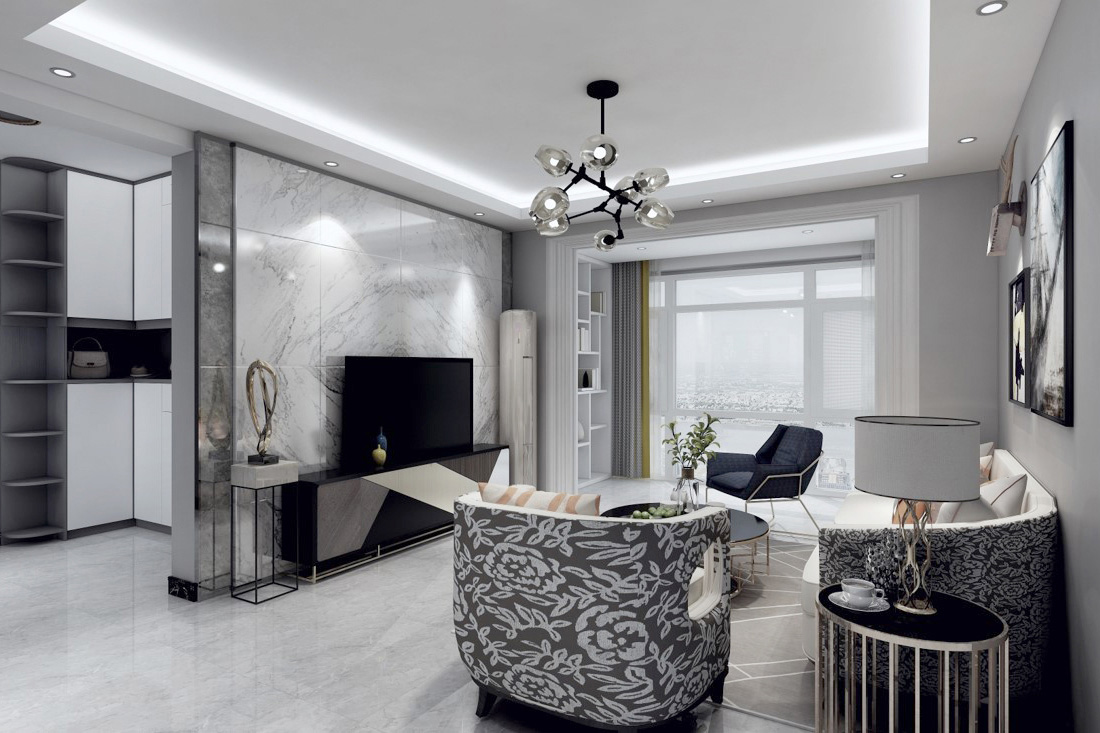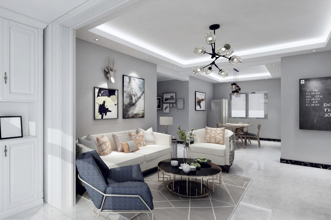 瀏覽量:312房屋整體主色調(diào):黑白灰,踏入房門首先看到的是灰色墻面和黑色的矮柜形成鮮明的對比。給人的第一感覺有浪漫、時尚,卻不失美式中特有的奢華。墻面以灰色為主,地板以深灰色為主色。整體空間的動線非常流暢,給人很舒服的感覺。客廳整體設(shè)計偏美式,硬裝選色大氣,配以布藝沙發(fā)的軟裝,硬裝配以現(xiàn)代風格的電視背景墻,整體給人的感覺穩(wěn)重而簡潔。美式的顏色不可過于濃重,在混搭風格中,只可點綴,它的作用是調(diào)節(jié)空間整體的氣氛。