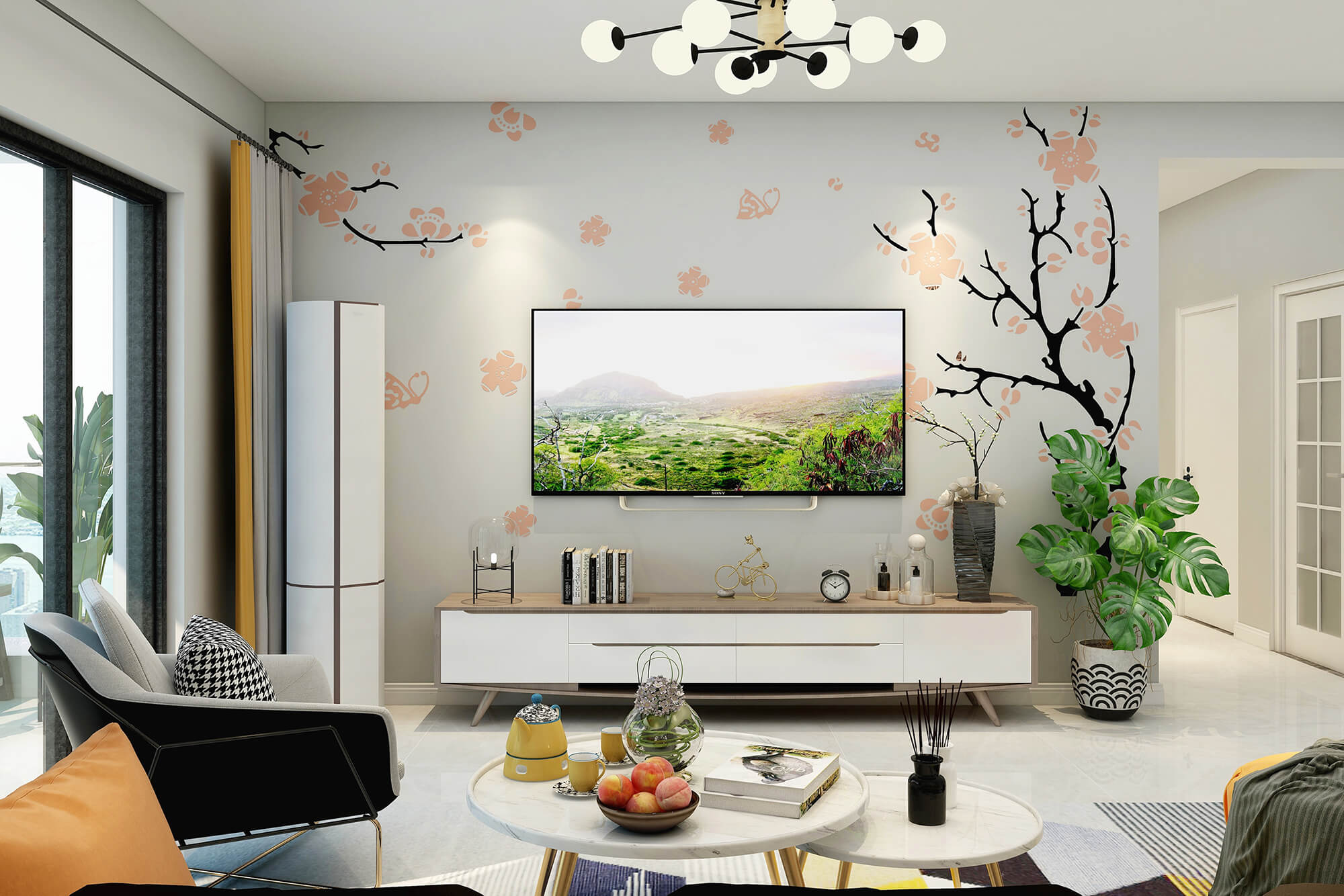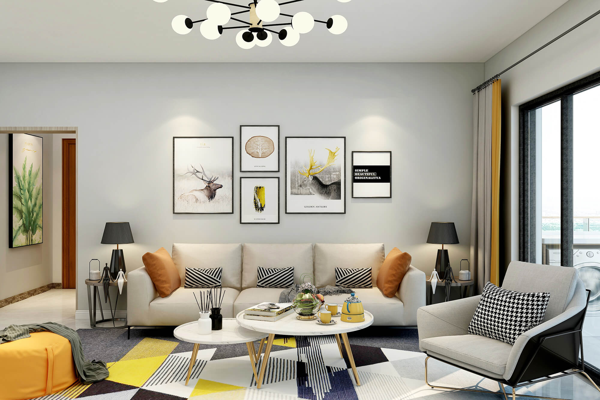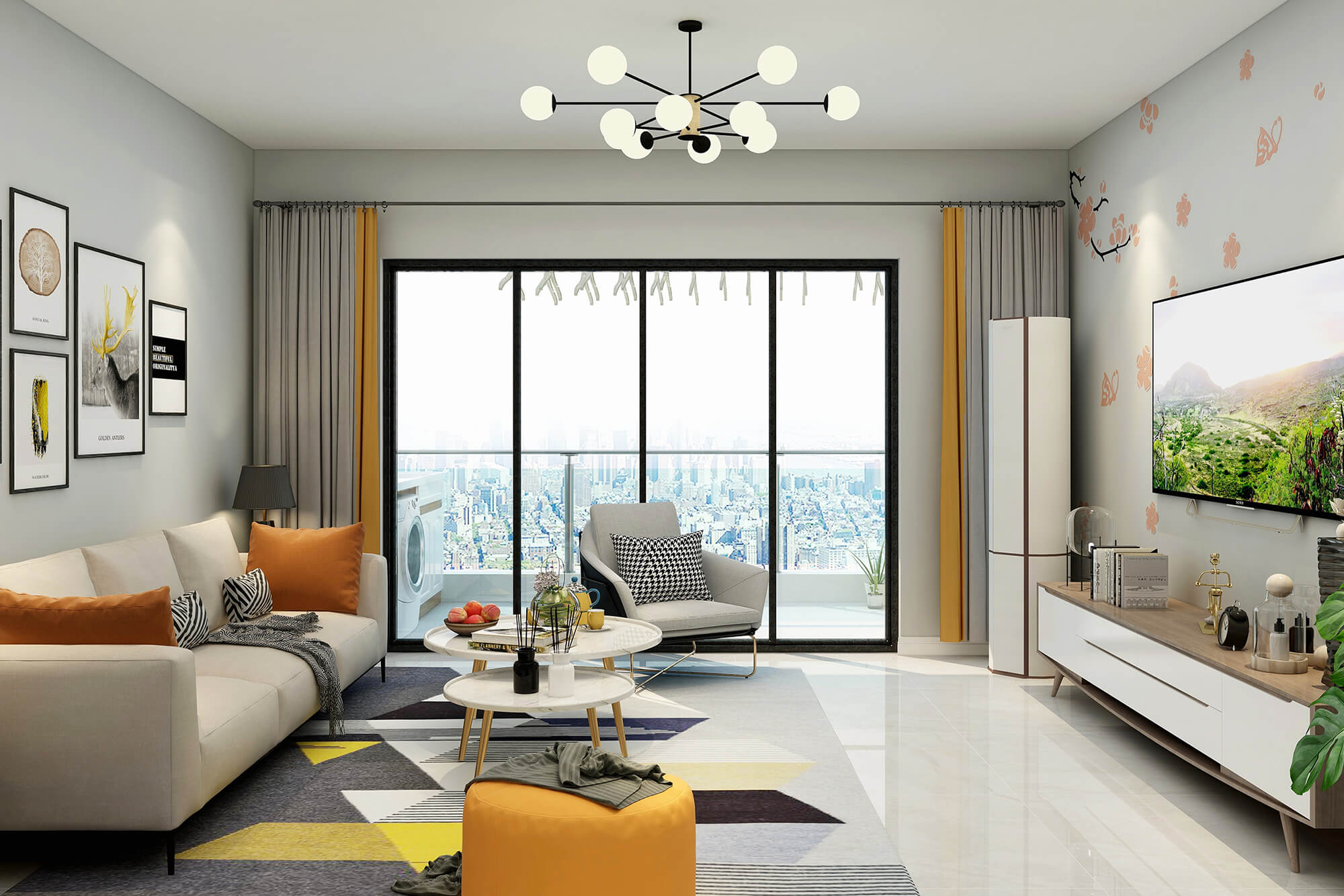 瀏覽量:427白色與米白色的搭配看起來干凈又溫柔,加上地毯里一抹明黃的顏色與沙發(fā)的橙色抱枕和橙色圓凳的跳色讓溫柔的搭配里又多了絲活潑,加上綠植點綴更好的融合了整體空間的色彩搭配。