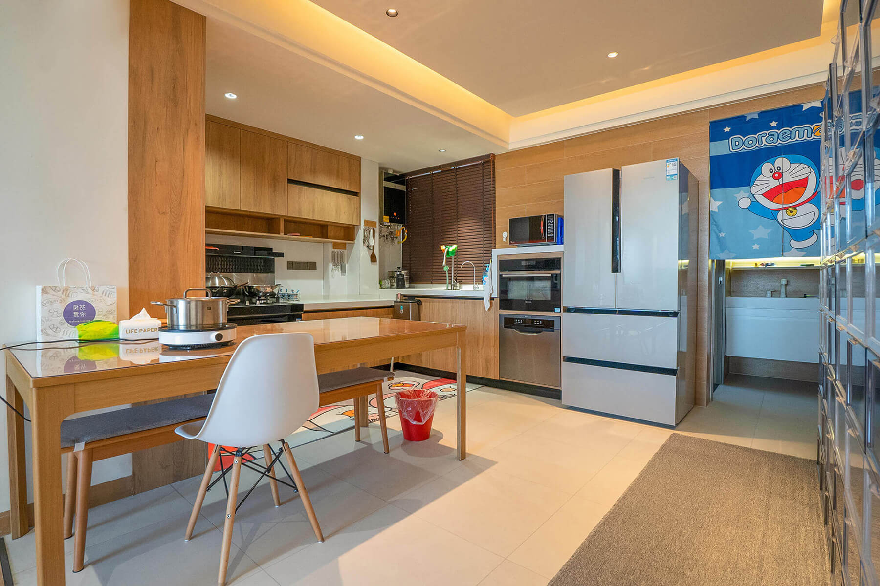 這套房子120平,整體是日式風(fēng),設(shè)計師根據(jù)業(yè)主的需求,全屋的布局和動線都貼合業(yè)主的生活習(xí)慣。以木色系為主,布置了很多燈光效果,打造出一個簡單而溫馨的家。貫通客廳與陽臺的主臥、開放式的餐廚、休閑餐吧等設(shè)計,都讓業(yè)主感到舒適輕松。