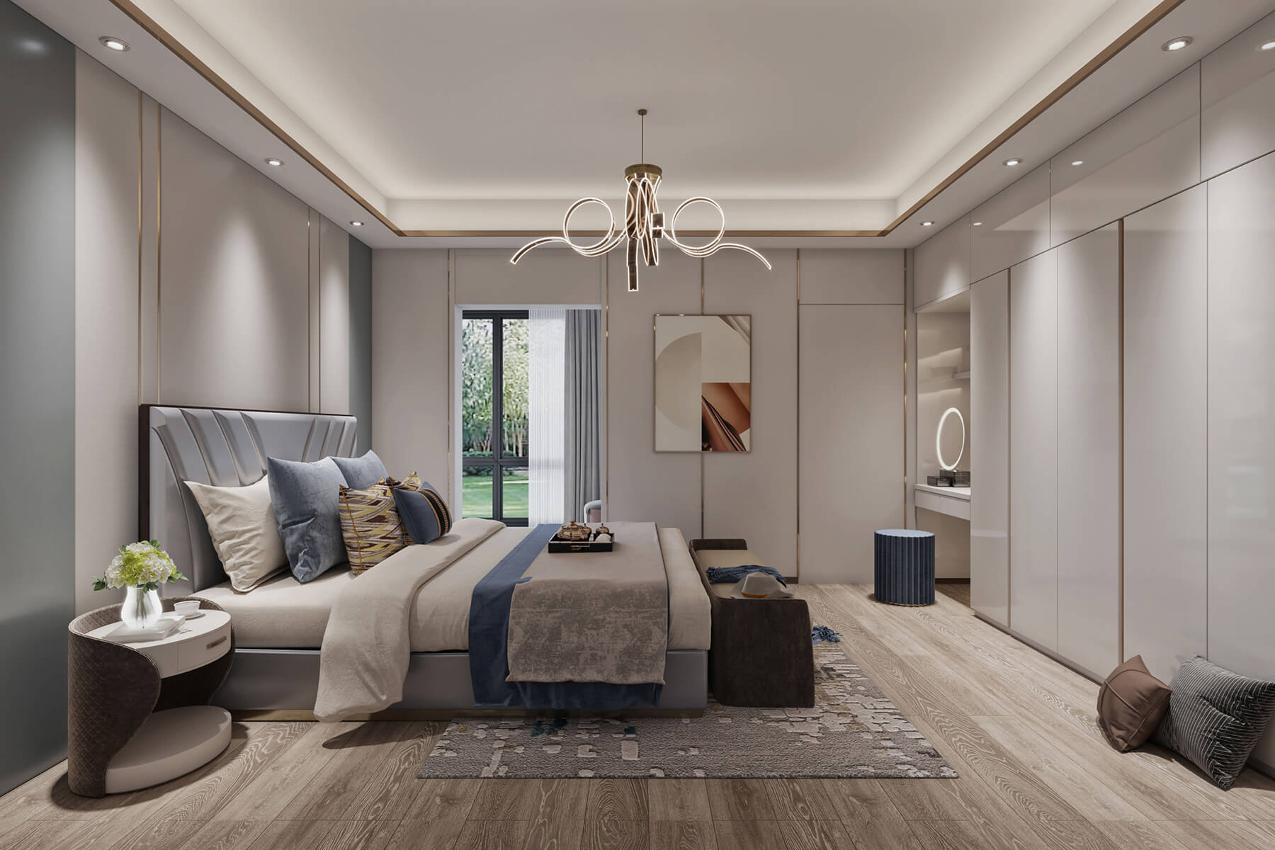 本案總面積260㎡??臻g以簡(jiǎn)單而富有設(shè)計(jì)感的材質(zhì),搭配一些低飽和的時(shí)尚色,搭建舒適宜人的視感與體驗(yàn),結(jié)合一些時(shí)尚簡(jiǎn)約掛畫(huà)和擺件,呈現(xiàn)一個(gè)簡(jiǎn)約舒適又溫馨的居住環(huán)境。