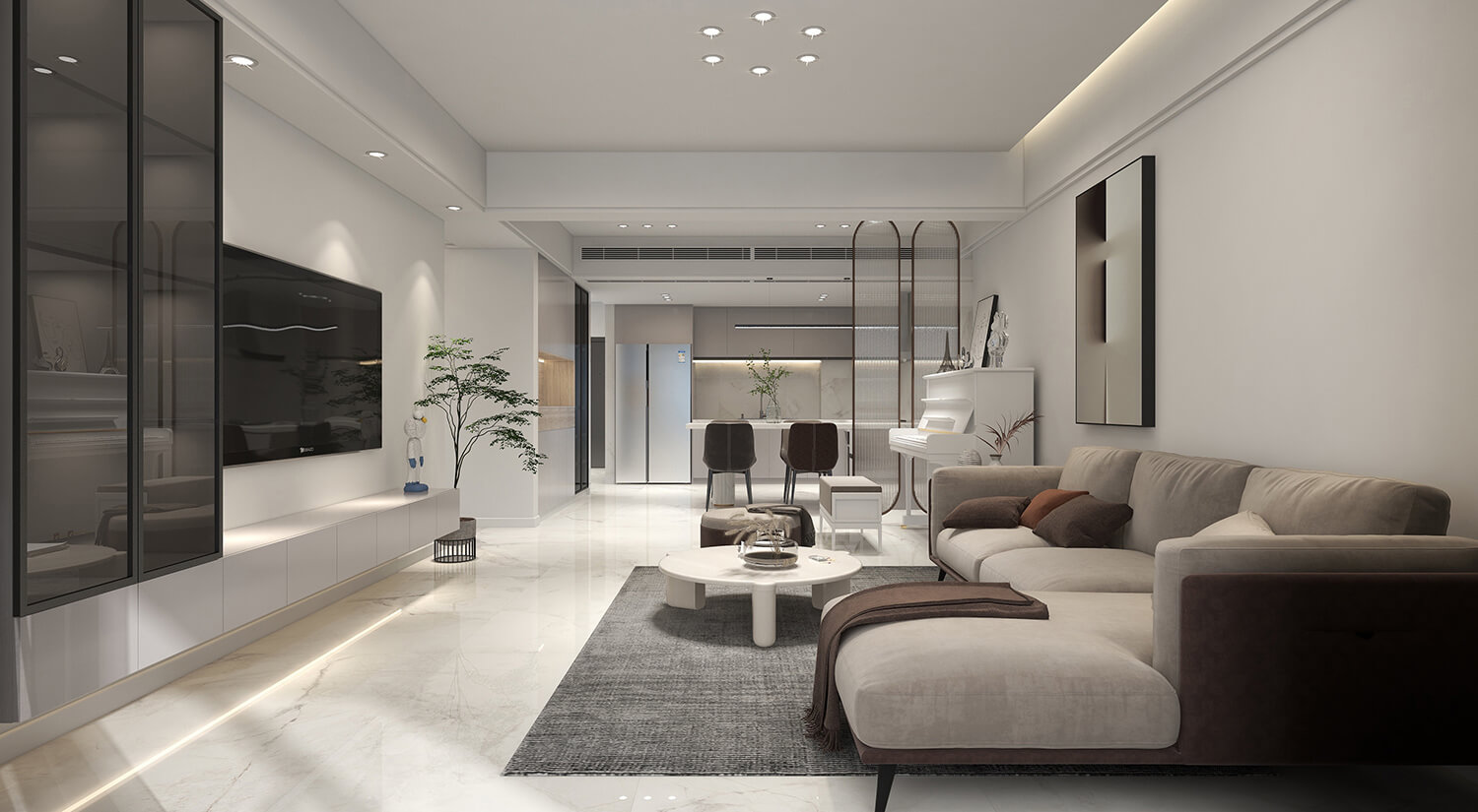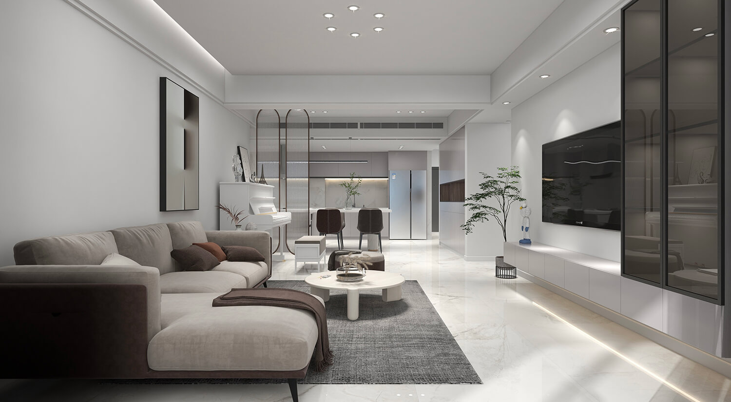 本案例戶型為:3房1廳2衛(wèi),總面積149㎡?,F(xiàn)代簡約風(fēng)格以極簡的線條、簡潔的色彩和純粹的形式為主要特征的室內(nèi)設(shè)計風(fēng)格。在這個案例的設(shè)計中,避免過多的裝飾和復(fù)雜的紋理,力求簡單、清爽和現(xiàn)代感。