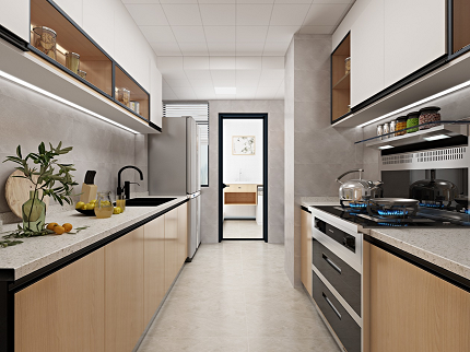 廚房:雙一字形廚房,能容納多人同時(shí)使用